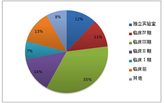 据美国临床试验数据库等数据来源显示,2014年全球 CRO 市场收入约 70%来自临床市场。其中,临床Ⅱ和临床Ⅲ期占了全部收入的 50%左右。我国CRO市场临床研究占到近60%。其中,临床I至III期市场合计约 37%,占比相对较低,且服务水平尚有一定提升空间。近年来,随着国内大中型 CRO 企业在临床试验领域与跨国药企开展合作,积累了越来越多的优质客户和临床试验研究经验,服务水平也正在快速提高,并逐步向国际先进水平靠拢。