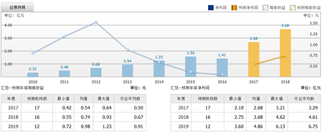 截至2017年7月17日,6个月以内共有 17 家机构对泰格医药的2017年度业绩作出预测;预测2017年每股收益 0.54 元,较去年同比增长 80%,预测2017年净利润 2.68 亿元,较去年同比增长 90.4% 。