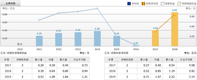 截至2017年7月17日,6个月以内共有 2 家机构对博济医药的2017年度业绩作出预测;预测2017年每股收益 0.30 元,较去年同比增长 1810.83%,预测2017年净利润 0.40 亿元,较去年同比增长 1832.84%。