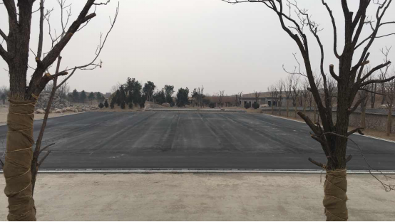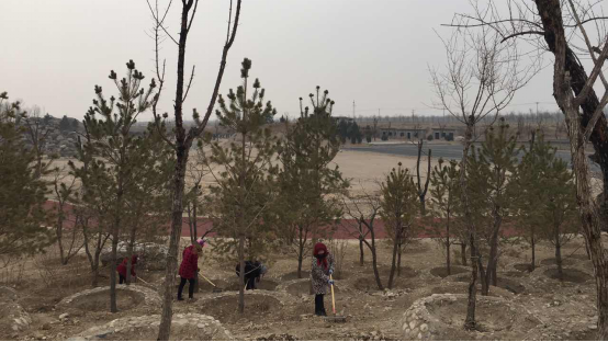 工人们正在对运动场地周边进行绿化