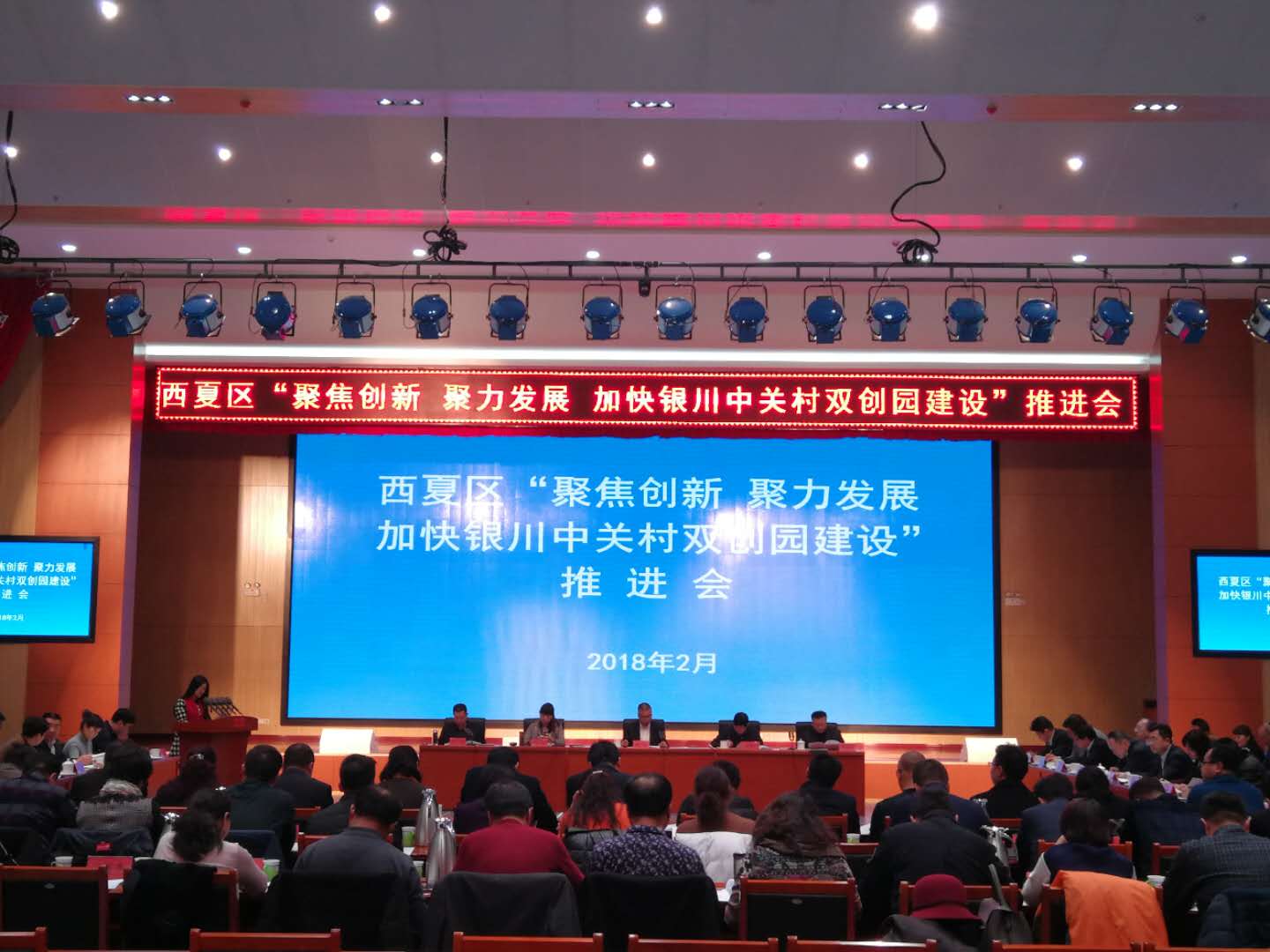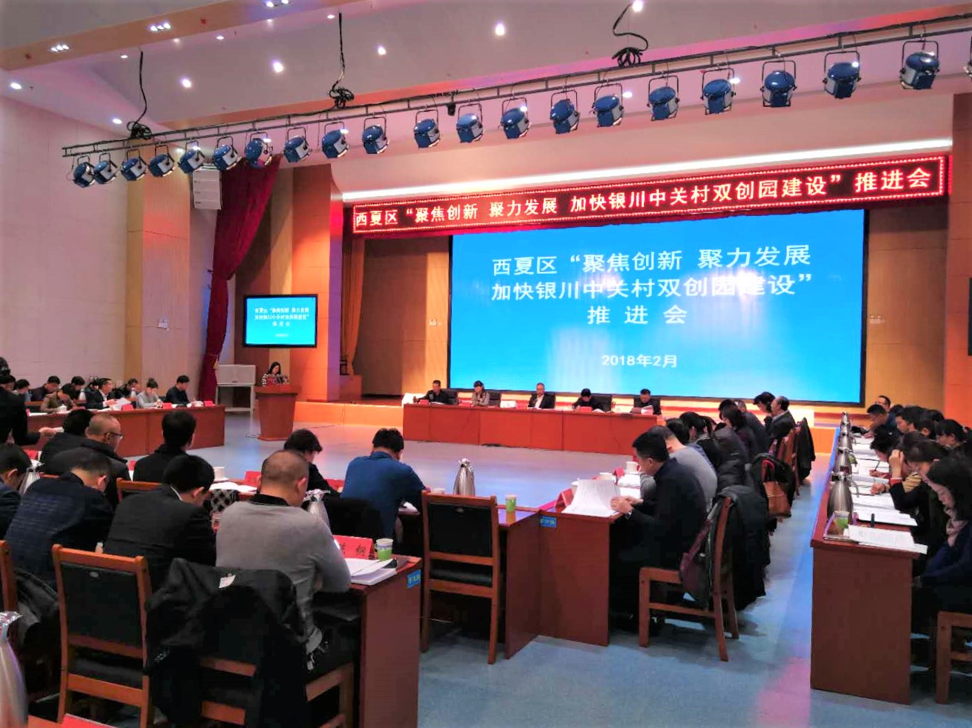 2月4日,西夏区“聚焦创新 聚力发展 助推银川中关村双创园建设”推进会在西夏区行政中心二楼礼堂召开。西夏区在职县级领导,人大各专职委员、各委室主任,政协各专职常委及委员、各委室主任,区直各部门主要负责人,各镇街党政主要负责人和垂管部门主要负责人等参加了推进会。会议由西夏区区委副书记、政法委书记、银川公铁物流服务中心主任党成主持。