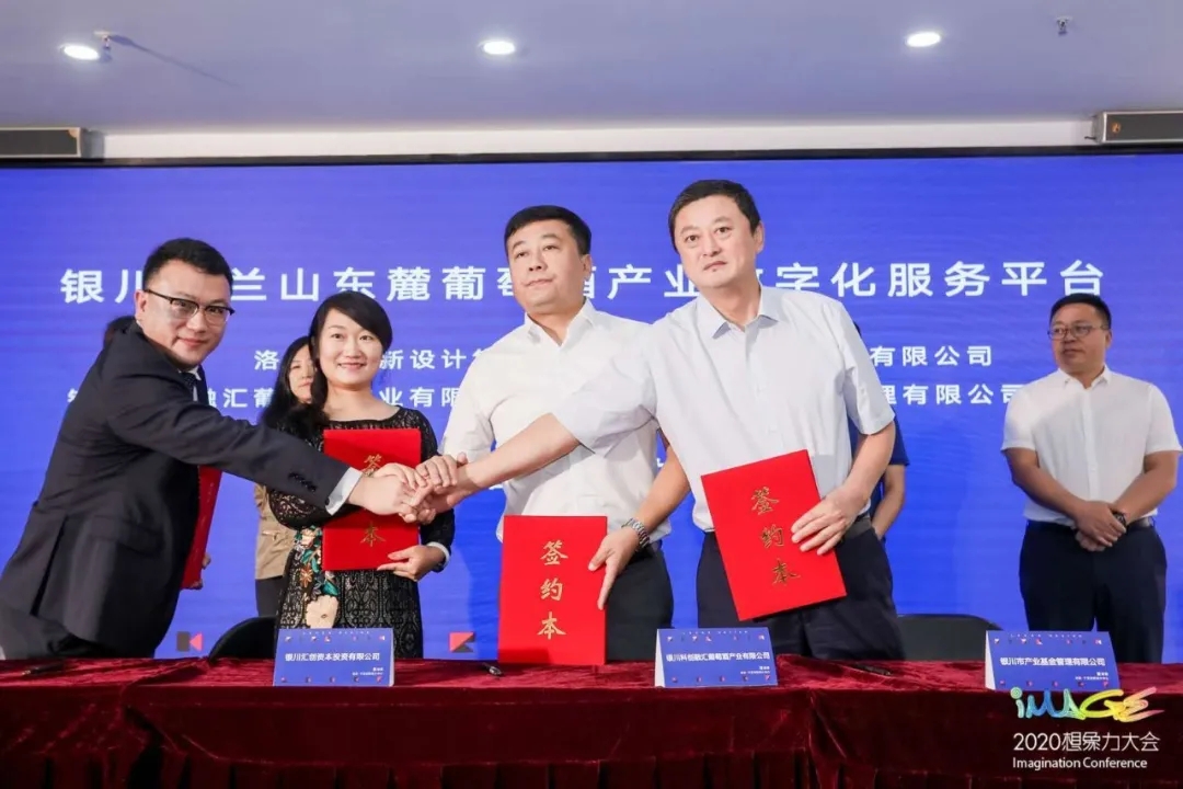 为了推进贺兰山东麓葡萄酒产业全链路数字化转型升级,促进贺兰山东麓葡萄酒品牌和品质的双提升,8月17日,银川汇创资本投资控股有限公司、银川科创融汇葡萄酒产业科技有限公司、银川市产业基金管理有限公司与北京洛可可投资管理有限公司,在银川举行了关于“银川贺兰山东麓葡萄酒产业数字化服务平台”战略合作签约仪式,市委常委、副市长陈康仁,西夏区委书记刘虹,阿里云智能副总裁李力,洛可可创新设计集团董事长贾伟以及自治区科技厅、工信厅、文旅厅相关单位代表和媒体近百人参加了活动,汇创资本董事长聂维月与洛可可总裁李毅超、科创融汇执行董事马骊、产业基金董事长田友强签署了合作协议。