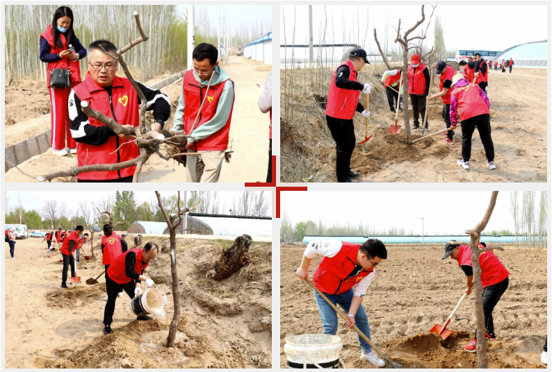 为了践行绿色发展理念,倡导人人爱绿植绿护绿的文明风尚,以实际行动为生态建设增绿添彩,银川市民委党支部与汇创资本党支部党员来到西夏区兴泾镇兴盛村,共同开展义务植树活动。植树现场,各位党员分工协作,挥锹铲土、扶正树苗、夯实泥土、浇水灌溉,呈现一派热火朝天的劳动场景。经过一番辛勤劳作,几十株枣树幼苗被栽种成行,在明媚的春光中展现出勃勃生机,孕育着绿色希望。