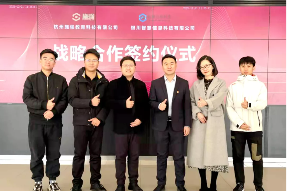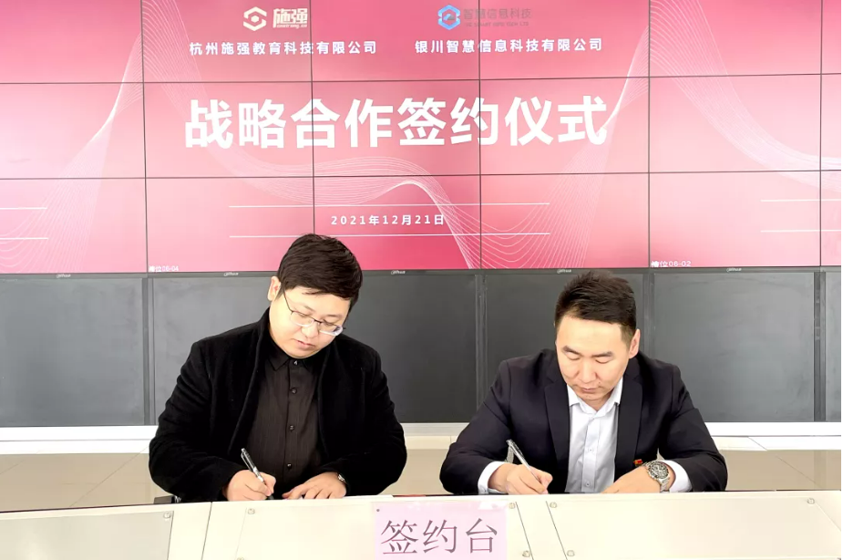 12月21日,银川汇创资本投资控股有限公司旗下银川智慧信息科技有限公司与杭州施强教育科技有限公司智慧教育战略合作签约仪式在银川智慧信息科技有限公司会议室举行,银川智慧信息科技有限公司总经理陈冠飞、杭州施强教育科技有限公司宁夏分公司总经理赵笛出席了签约仪式。