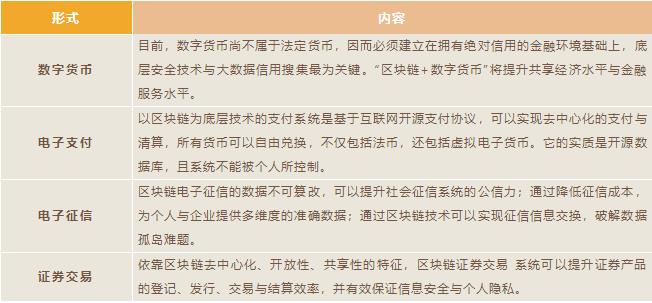 区块链在金融领域的技术结合目前相对其它产业较为成熟。“区块链+”作为金融科技的底层技术架构,可以通过多种形式改变以至重塑金融业运行模式,主要包括以下几个方面