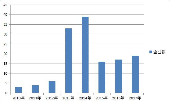 区块链企业数量仍在不断增长,其中2014年单年度新增区块链企业数量最多。