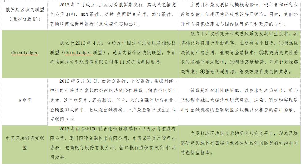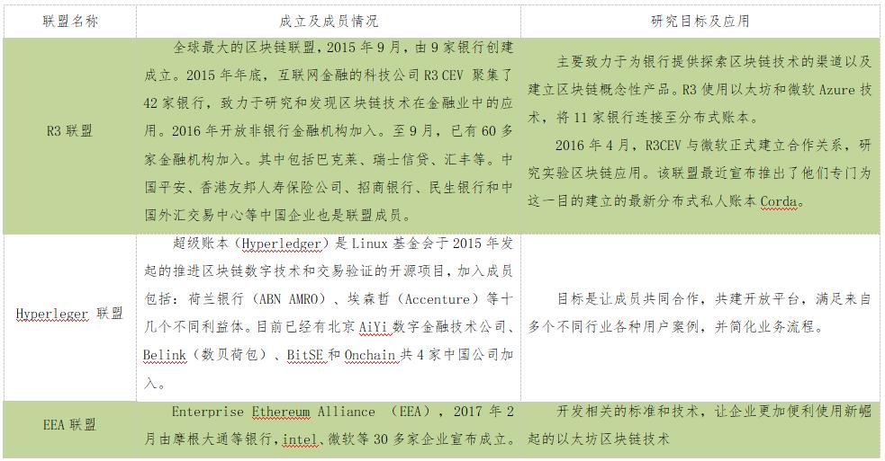 由40多家银行参与的区块链联盟R3和Linux基金会支持的超级账本(Hyperleder)项目都属于联盟链架构。目前国内有影响力的区块链联盟——中国分布式总账基础协议联盟(ChinaLedger)、中国区块链研究联盟、金链盟(金融区块链联盟)等——也都在致力于开发联盟区块链项目。
