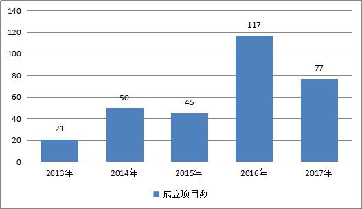区块链项目成立数量在2016年达到顶峰,在2017年出现一定回落。