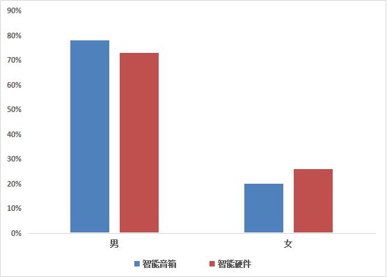从上述图表中可以看到在智能音箱使用上男性用户居多。