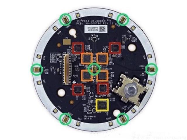 下图展示了 Echo 拆解后的部件。可以看到,智能音箱的硬件并不算复杂(相对于无人驾驶等“重型”AI 产品)。