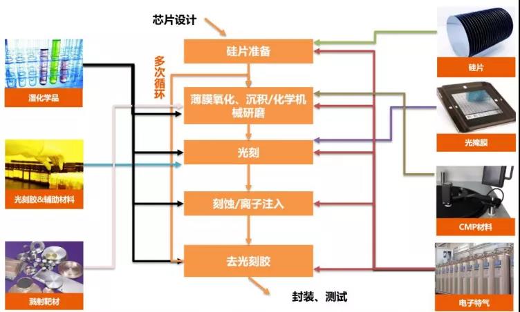 图表2 芯片制造工序各单项工艺均配套相应材料