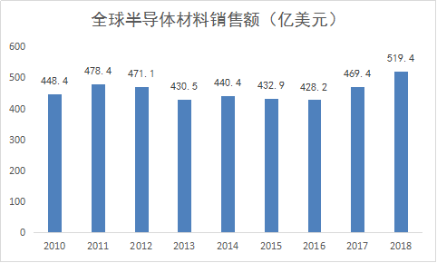 SEMI数据显示,2018年全球半导体材料市场销售额约519.4亿美元,其中制造材料销售额约322亿美元,封装材料销售额约197亿美元。在整个电子信息产业中,半导体材料的产值虽不能算极高,但却具有极大的附加值和特有的产业生态支撑作用,半导体材料的自主可控关乎整个电子信息产业生态安全。