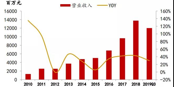 2018年,公司实现营业收入137.6亿元,同比增长42.63%,实现归母净利润6.3亿元,同比增长8.16%。其中半导体材料占公司总营收的7.4%,新能源材料占公司总营收87.9%。