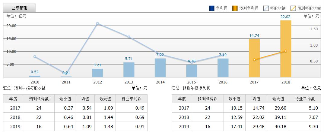 截至2017年8月3日,6个月以内共有 24 家机构对欧菲光的2017年度业绩作出预测。预测2017年每股收益 0.54 元,较去年同比下降 21.65%;预测2017年净利润 14.74 亿元,较去年同比增长 105.09% 。