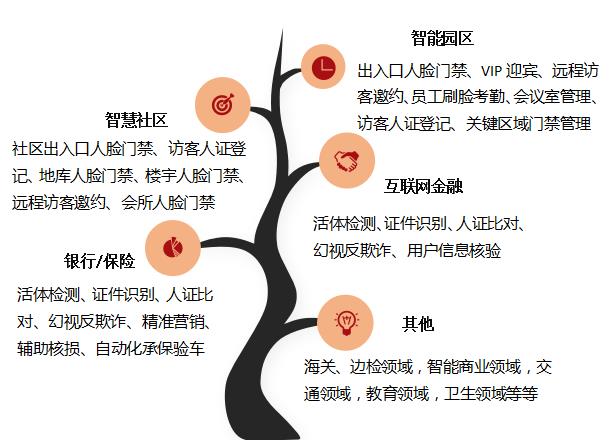 人脸识别技术发展至今,面部识别率一直是压制其普及的关键因素,但随着卷积神经网络在人脸识别技术算法中的应用,其准确率超越人眼,人脸识别技术开始大规模普及。人脸识别技术也以非接触性、非侵扰性、硬件基础良好等优势在智慧社区、智慧园区、互联网金融、银行和保险等众多领域得到发展、应用。