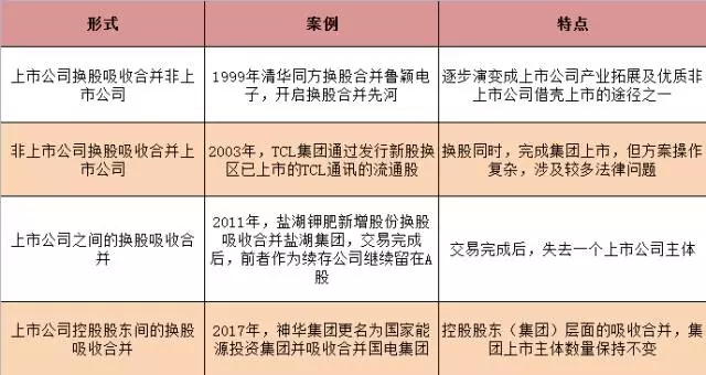中国国电集团公司与神华集团有限责任公司的合并重组过程中,控股股东层面的集团吸收合并由神华集团来吸收合并国电集团,双方集团均有A股上市的子公司,属于上述第四种。