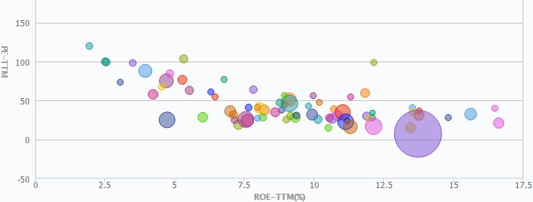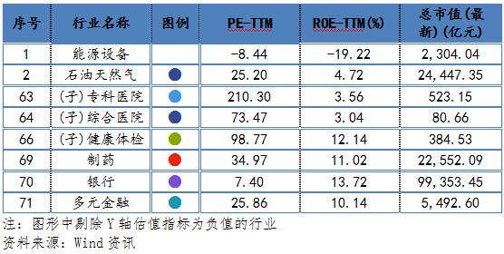 健康体检行业市盈率(PE)为98.77,其净资产收益率(ROE)为12.14%,相较其他行业而言处于较高位置;健康体检行业的总市值为384.53亿元,相较其他行业而言,处于较低水平。