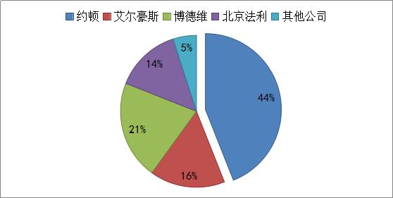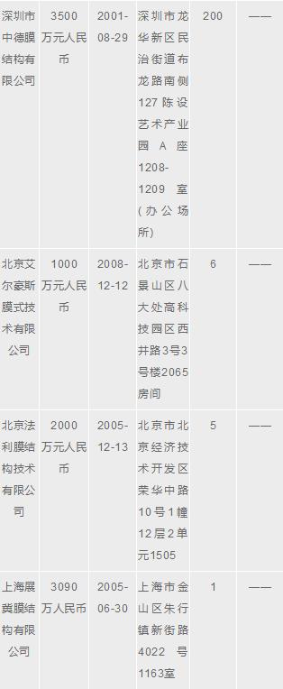 目前,国内有一定规模的气膜建筑厂商数量不超过10家。在应用最广的体育气膜市场方面,位于行业前四名的北京约顿气膜建筑技术股份有限公司(以下简称为:约顿、约顿气膜)约顿气膜、北京艾尔豪斯膜式技术有限公司(以下简称为:艾尔豪斯)、深圳市博德维环境技术股份有限公司(以下简称为:深圳博德维、博德维)、北京法利膜结构技术有限公司(以下简称为:北京法利)四家公司占据了90%以上的市场。目前气膜市场最具有技术优势的两家公司约顿气膜和深圳博德维占据了整体市场2/3的份额,其他厂商整体技术能力比较薄弱,订单抢占能力相对较弱,不过在巨头产能有限的情况下仍然有生存的空间。