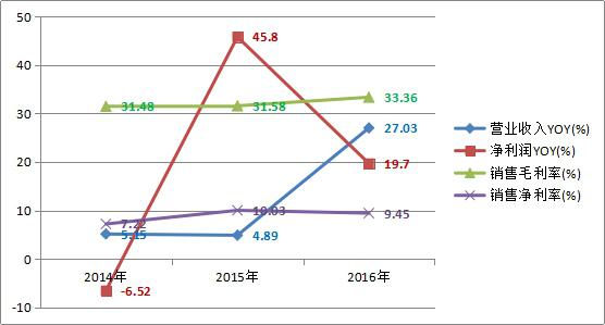 2016年,约顿的总资产增长率、净利润增长率分别为69.61%、19.71%,两指标较2015年均有不同程度的下降;营业收入增长率为27.04%,较2015年有所上升。