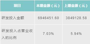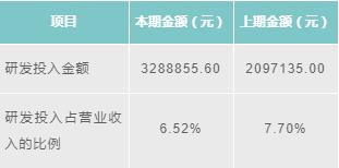 2016年,维拓环境研发投入金额为3288855.60元,相较2015年有所增长。维拓环境研发投入占营业收入的比例,由2015年的7.70%下降为2016年的6.52%。