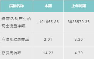 维拓环境2016年经营活动产生的现金流量净额为-101065.86,应收账款周转率为2.01,两指标较2015年均有下降,流动性下降;存货周转率由4.79上升为14.23,企业存货资产变现能力增强。