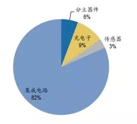 按照半导体的制造技术,可以分为集成电路、分立器件、光电子、传感器等。集成电路市场占半导体产业的比例超80%,因此,在大多数场合,半导体主要指代集成电路。集成电路工艺制程包括设计、制造和封装测试,制造和封装测试环节工艺复杂,工序繁多,14nm制程生产线包含的工序多达1700道,所需要的设备种类多样。