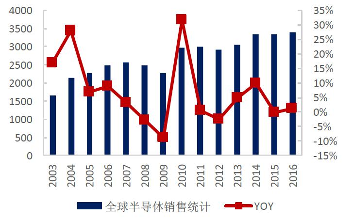 随着全球经济的逐步复苏,PC、手机、液晶电视等消费类电子产品需求不断增加,同时在以物联网、可穿戴设备、云计算、大数据、新能源、医疗电子和安防电子等为主的新兴应用领域强劲需求的带动下,半导体销售市场规模稳定增长,预计2017年全球集成电路市场规模增长至3465亿美元。