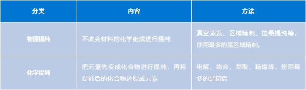 半导体材料所有的半导体材料都需要对原料进行提纯,要求的纯度在6个“9”以上,最高达11个“9”以上。提纯的方法分两大类: