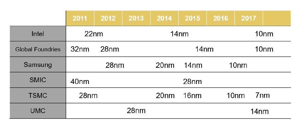 全球领先半导体企业工艺制程水平