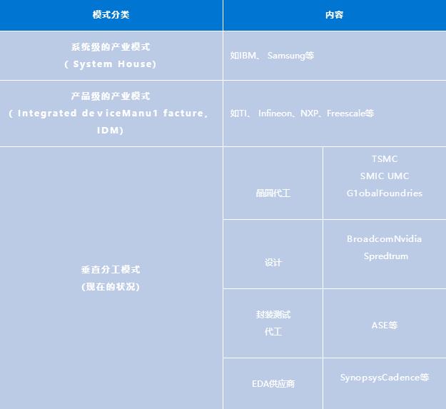 全球集成电路领域的产业模式分为:
