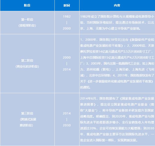 第一阶段(1990年代末到2000年),希望建立强大的本土集成电路制造产业,但并未成功;