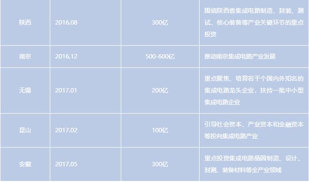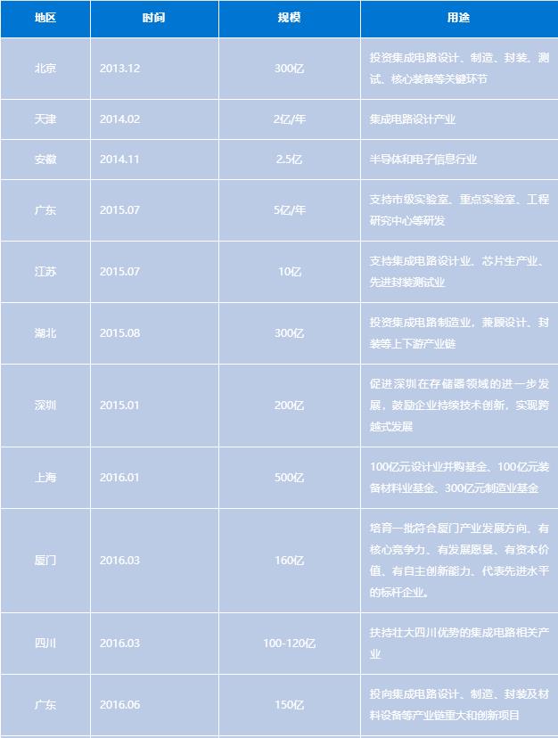 各省市集成电路产业基金