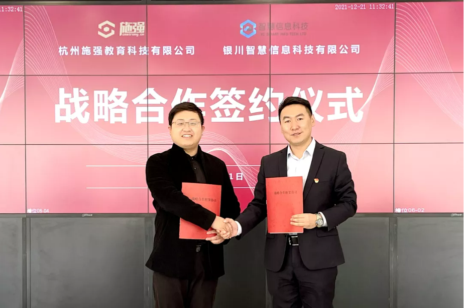 12月21日,银川汇创资本投资控股有限公司旗下银川智慧信息科技有限公司与杭州施强教育科技有限公司智慧教育战略合作签约仪式在银川智慧信息科技有限公司会议室举行,银川智慧信息科技有限公司总经理陈冠飞、杭州施强教育科技有限公司宁夏分公司总经理赵笛出席了签约仪式。