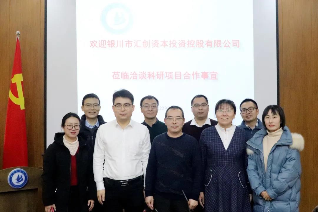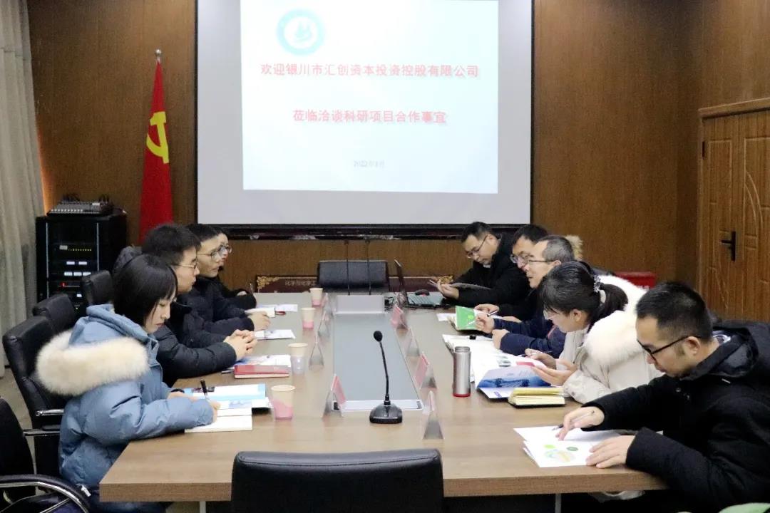 为进一步加强企校深度合作,助推企业高质量发展,1月11日,银川汇创资本投资控股有限公司所属银川智慧食品安全检验检测中心和北方民族大学化学与化学工程学院针对企校合作、人才交流、项目共建等内容开展了交流座谈,北方民族大学化学与化学工程学院党支部书记马立军、副院长刘天霞、柳华与汇创资本公司党支部副书记、总经理助理许云霄、检测中心负责人何健辉等人参加了座谈会议。