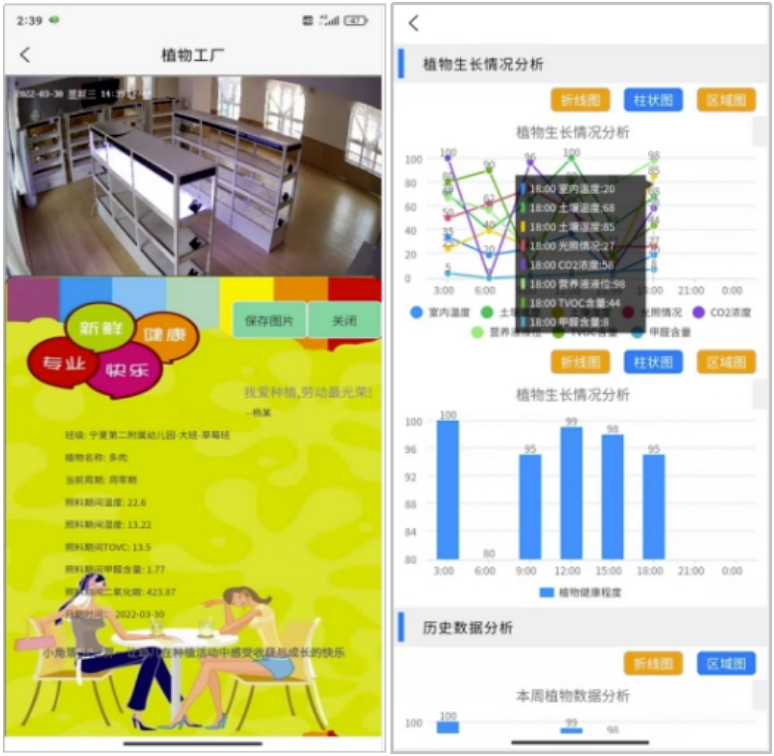 科普教育互动性方面,系统设计了云植物成长功能普及植物生长情况,视频监控采用数字化硬盘技术实现植物图象的远距离清晰化传送,做到参数与图像的全方位监控,实现学校师生通过监控视频实时关注植物工厂植物种植情况,通过云观看的方式关注植物的正常生长周期,只需敲击键盘就可以做到生产指挥的数字化管理,对植物进行云浇水、云施肥。