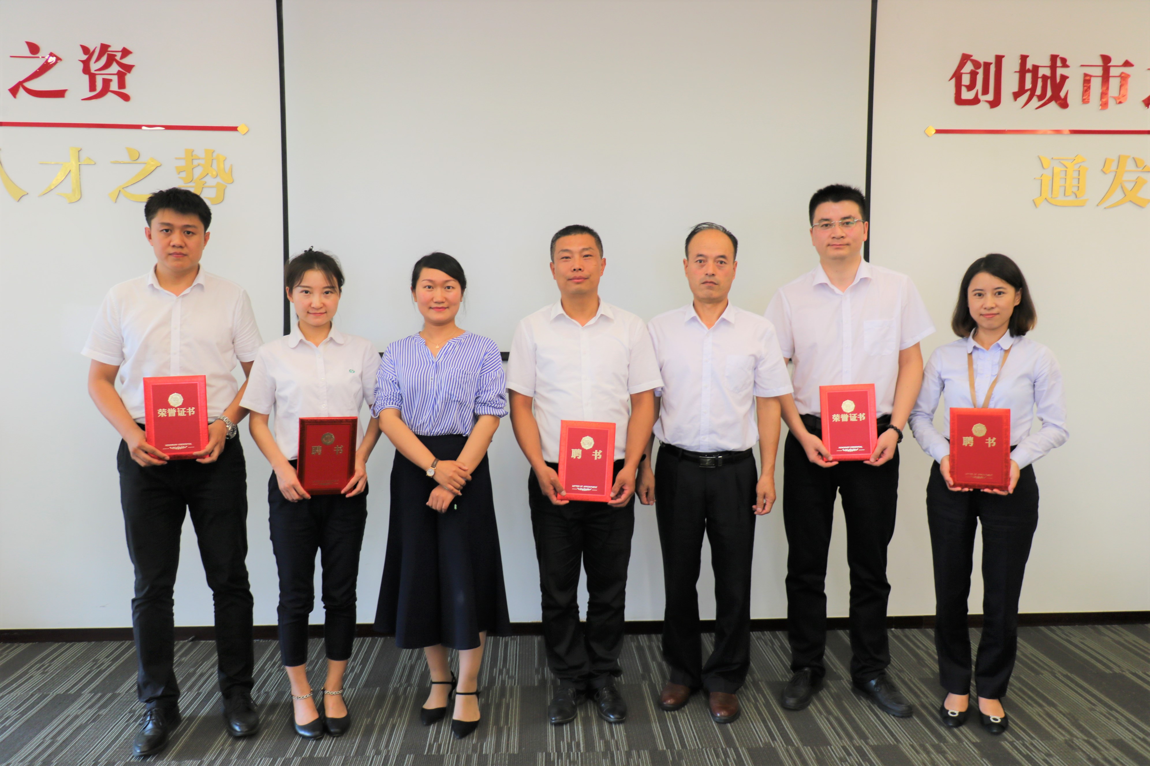 评审小组从形象仪表、授课态度、授课思路、语言表达、肢体语言应用、课程内容设计、授课模式选择、课程案例选择、课件设计美观等维度对试讲选手进行了评审打分;现场大众评审也通过手中的“笑脸牌”,根据试讲选手的综合表现,给予了评分;经过3个小时的角逐,资产管理部资产管理专员杨光,银川智慧电商有限公司营销策划专员杨瑾瑜并列第一名,综合部人力资源专员李晓、行政专员高瑞娟并列第二名,银川智慧电商有限公司总经理杨宗昉荣获第三名,并顺利成为公司内部培训师,公司领导聂维月、别志立为获奖选手颁发聘书。