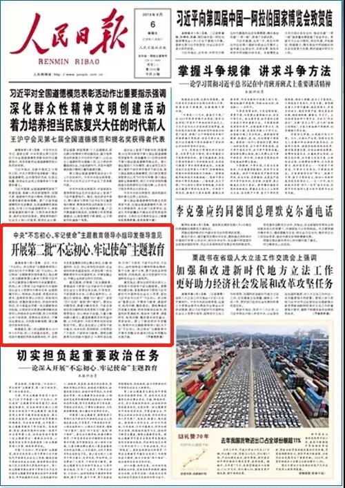 近日,中央“不忘初心、牢记使命”主题教育领导小组印发《关于开展第二批“不忘初心、牢记使命”主题教育的指导意见》,指出第二批主题教育要认真学习贯彻习近平总书记重要指示精神和中央部署要求,把深入学习贯彻习近平新时代中国特色社会主义思想作为根本任务,全面把握守初心、担使命,找差距、抓落实的总要求,坚持抓思想认识到位、抓检视问题到位、抓整改落实到位、抓组织领导到位,充分借鉴运用第一批主题教育成功经验,以彻底的自我革命精神解决违背初心和使命的各种问题,努力实现理论学习有收获、思想政治受洗礼、干事创业敢担当、为民服务解难题、清正廉洁作表率的目标。