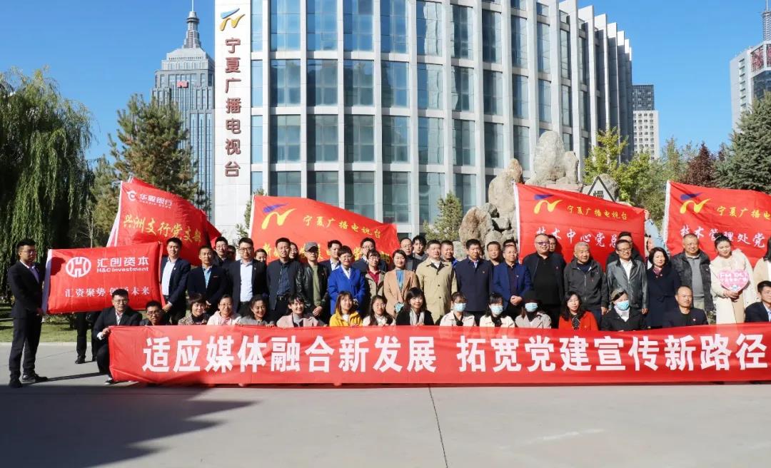 为了更好地探索运用新媒体创新党建工作方式方法、丰富党建工作载体形式,共同提升党建工作品牌赋能水平,10月22日,汇创资本党支部携手银川市金融工作局党支部、华夏银行银川分行党委、宁夏广电新媒体有限公司党支部、宁夏广播电视台技管处党支部、宁夏广播电视台音乐广播党支部、宁夏广播电视台融媒体中心党支部、宁夏广电物业公司党支部、技术中心广播播出科党支部等9个党组织,一起走进宁夏广播电视台,共同组织开展了“适应媒体融合新发展 拓宽党建宣传新路径”联合主题党日活动。
