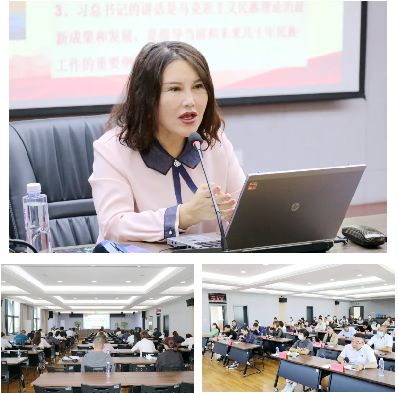 根据“银川国资金融系统六维一体协同开放党建共建共享平台”项目国企党建工作系列培训计划,汇创资本党支部组织承办了“习近平总书记在中央民族工作会议上的讲话精神解读”专题讲座,特邀北方民族大学马克思主义学院教授进行授课,市国资系统26家企业的党组织书记、副书记、党务专干近50人参与了本次讲座。本次讲座深入讲解了党的民族工作的历史经验、当前形势,明确了新时代党的民族工作高质量发展的指导思想、战略目标、重点任务、政策举措等,为增强广大党员“四个意识”,坚定“四个自信”,引导党员切实把思想和行动统一到中央、自治区和银川市的决策部署上来奠定了思想基础。