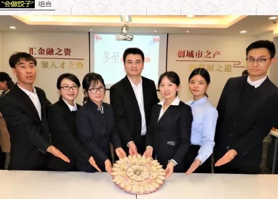 “会做饺子”组合,用饺子摆成了圆环,象征着汇创资本的所有员工团团圆圆、心心相印。
