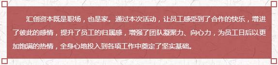 “多彩生活”组合,用饺子摆成了大好河山图和公司LOGO,象征汇创资本多姿多彩、红红火火。